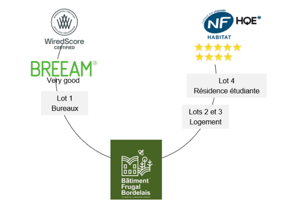 Lot 1 – Bureaux : Certification BREEAM niveau Very Good et Wiredscore niveau Classique